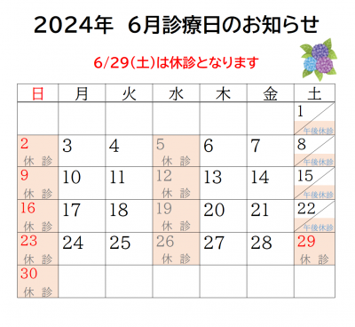 また6月29日(土)も休診とさせていただきます。