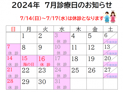 7月の休診のお知らせです。