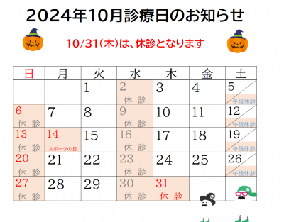 10月の休診のお知らせです。